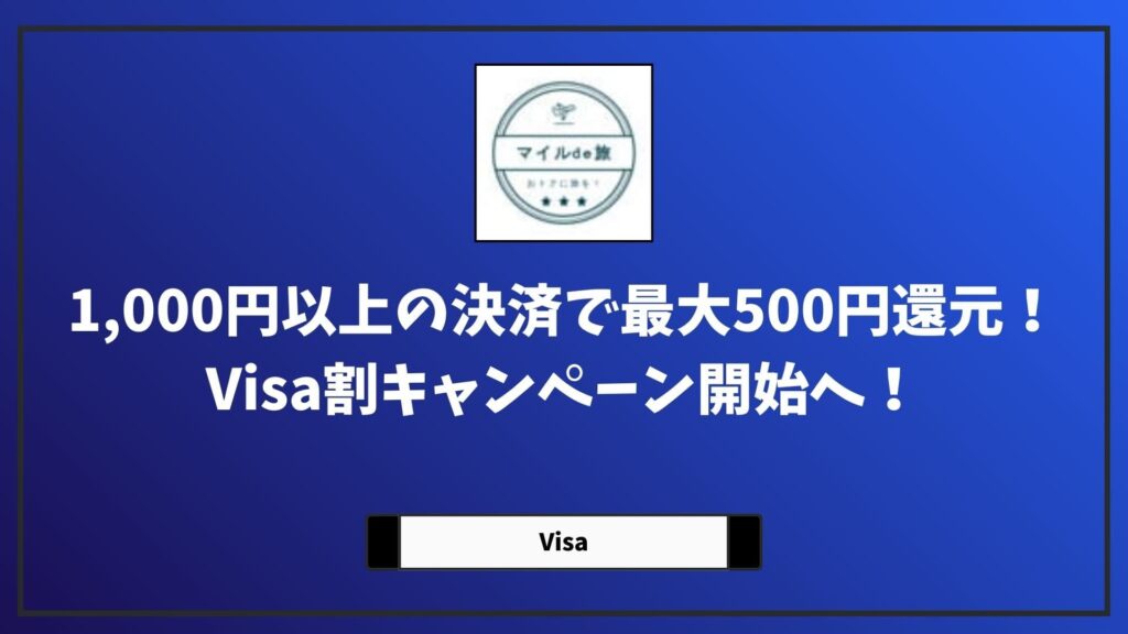 スマホなどに登録したVisaカードを使って、1回1,000円以上のタッチ決済をすると、最大500円のキャッシュバックが狙えるVisa割キャンペーンがスタートです。かなり間口が広いキャンペーンなので、これは見逃せないですね。
