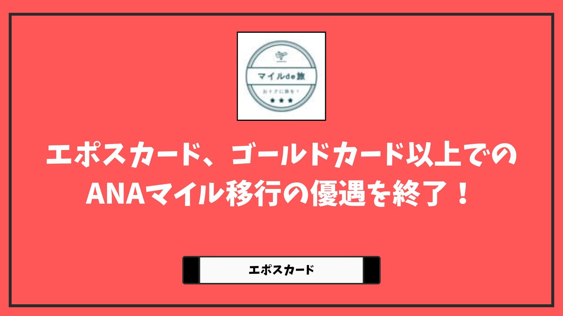 「エポスカード」が、2026年3月31日を以って、ゴールド・プラチナカード会員向けに提供していたANAのマイルへの交換での優遇レートを、終了させることを発表しました。